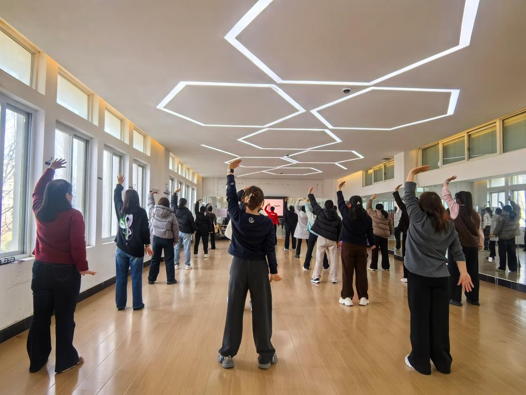 为庆祝第114个“三八”国际劳动妇女节,弘扬中华传统养生文化,丰富女教职工的精神文化生活,3月5日下午,基础教学部分工会在笃行楼217室精心组织了一场别开生面的八段锦健身主题活动。部门全体35名女教工踊跃参与,在欢声笑语中共同度过了一个健康、和谐、温馨的节日。